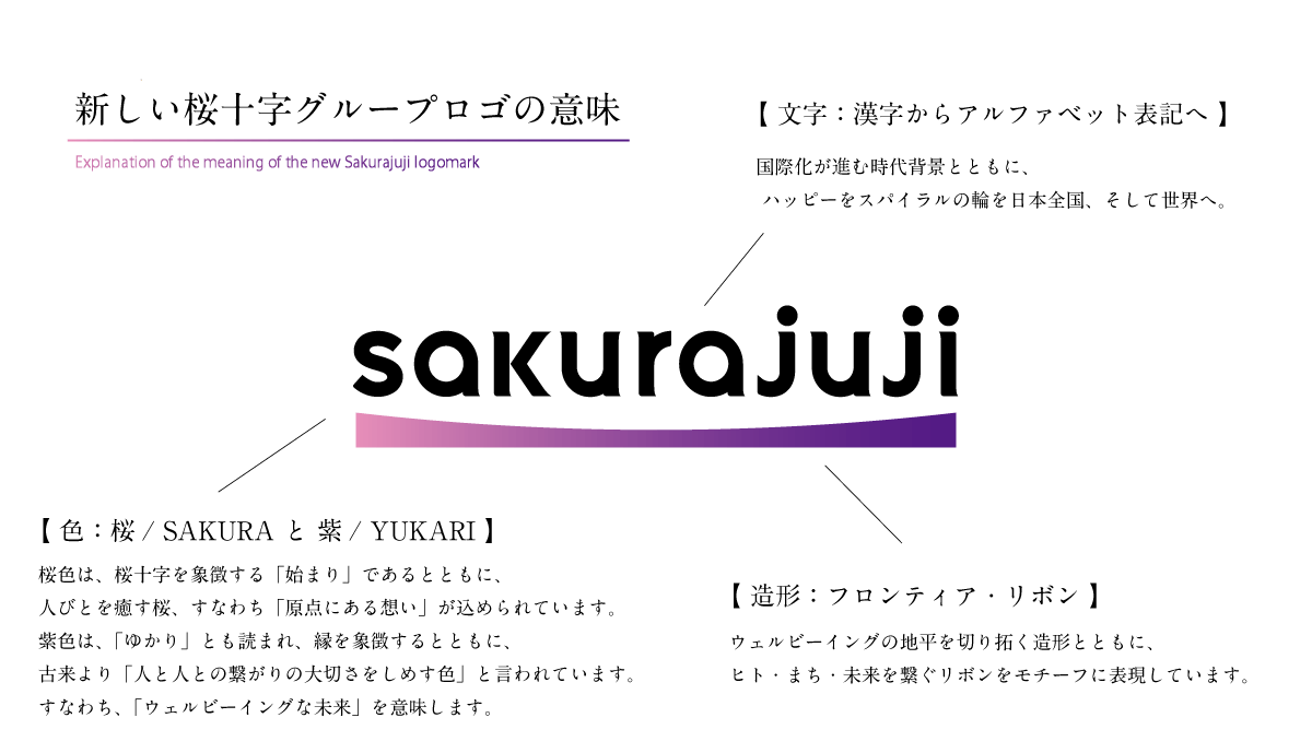 グローバルな展開と認知拡大を見据え、グループ名称の表記を、従来の日本語表記「桜十字」から、アルファベット表記の「sakurajuji」へと変更しました。
